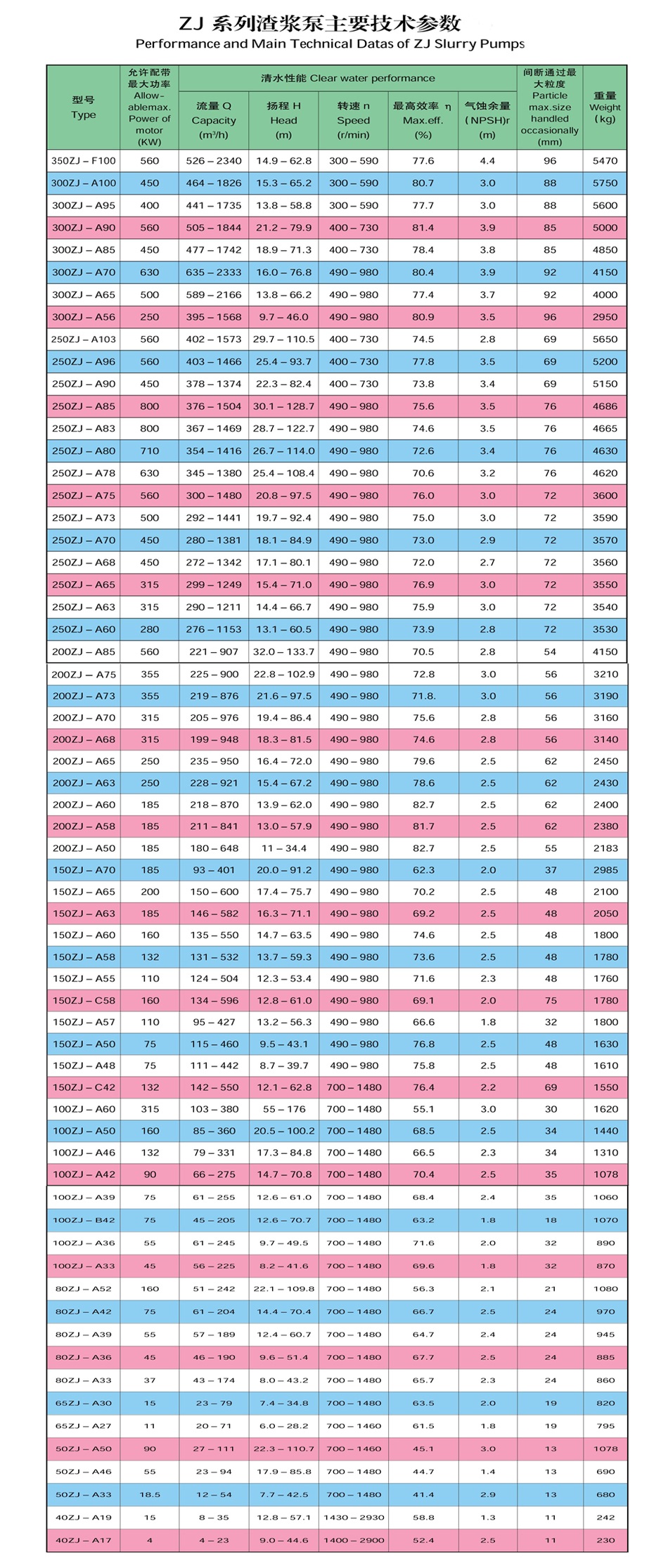 隨著雜質泵技術的發展和完善,我公司結合用戶反饋經驗,利用現代流體力學的理論,現代機械理論,電腦軟件設計技術;我公司推出了ZJ系列渣漿泵,該系列渣漿泵具有型號全、性能穩定,覆蓋工況廣、選型方便等特點。